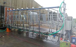 - Separate mobile Melktechnikeinheit inkl. Stromaggregat, Spülung der Melktechnik am Hof, der Transport von (gebrauchtem) Spülwasser ist so nicht nötig.