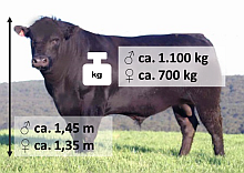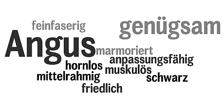Der ruhige und gutmütige Charakter der Angus-Rinder erleichtert die Haltung und den Umgang mit den Tieren. Mit ihren festen Klauen, ihrer hohen Anpassungsfähigkeit und ihren genügsamen Ansprüchen sind sie optimal geeignet für eine ganzjährige Weidehaltung. Die weiblichen Tiere besitzen gute Muttereigenschaften, sind sehr frühreif und be- kommen i.d.R. mit 24 bis 27 Monaten ihr erstes Kalb. Die vitalen Kälber entwickeln sich durch die hohe Säugeleistung der Mutter sehr schnell.