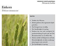 Einkorn gehört zu den ältesten Kulturpflanzen und wird auch als „Urgetreide“ bezeichnet. Schon vor etwa 10.000 Jahren wurde Einkorn im Gebiet des Fruchtbaren Halbmonds (im heutigen nördlichen Syrien und der südlichen Türkei) angebaut. Nach Mitteleuropa kam das Urgetreide um 4500 bis 4000 v. Chr. Bis heute wurde Einkorn kaum züchterisch bearbeitet, worauf die fehlende Standfestigkeit der vorhandenen Herkünfte und Sorten im Anbau beruht.