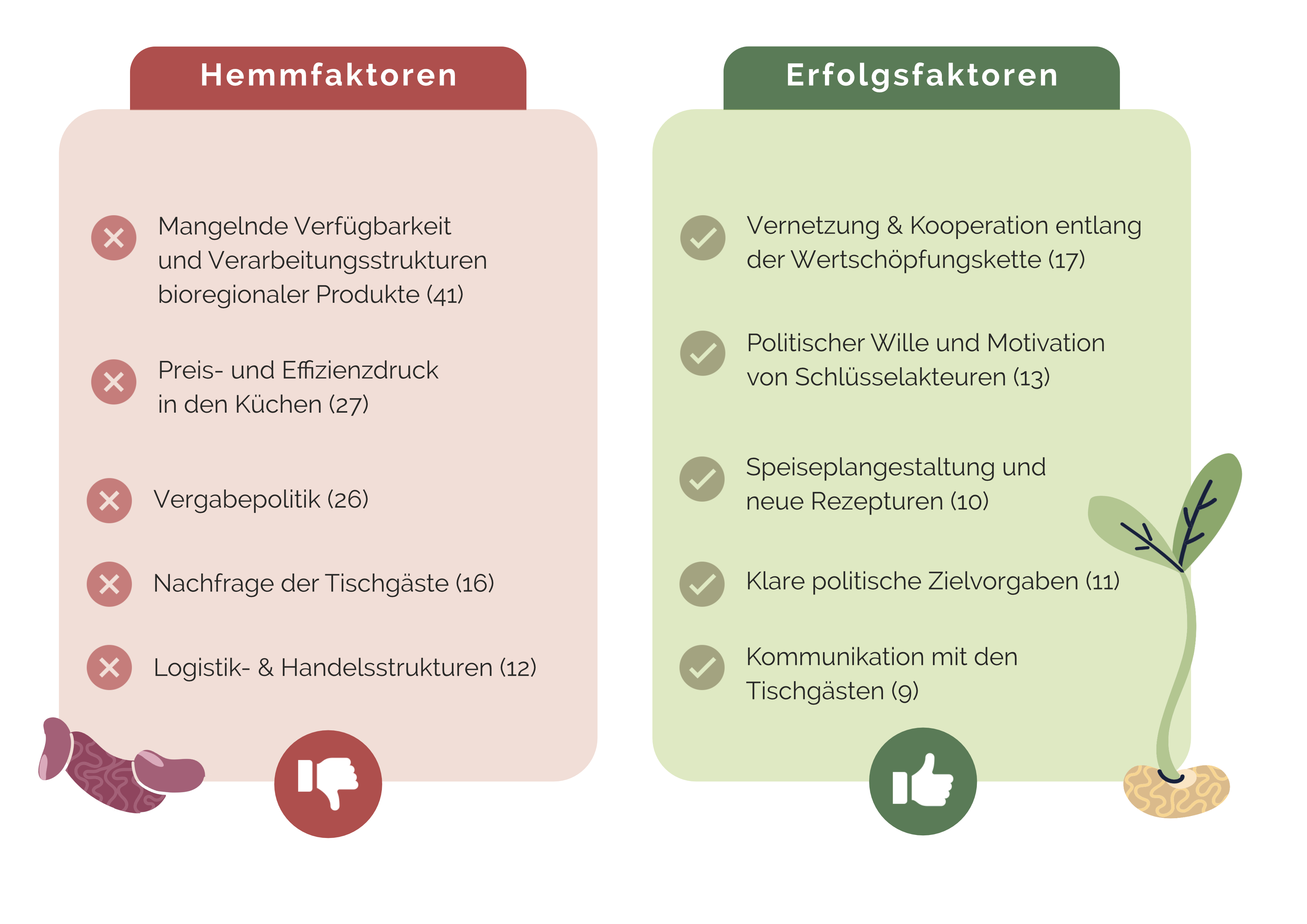 Daraus konnten die zehn wichtigsten Erfolgs- und Hemmfaktoren für den Einsatz und Ausbau bioregionaler Produkte in der