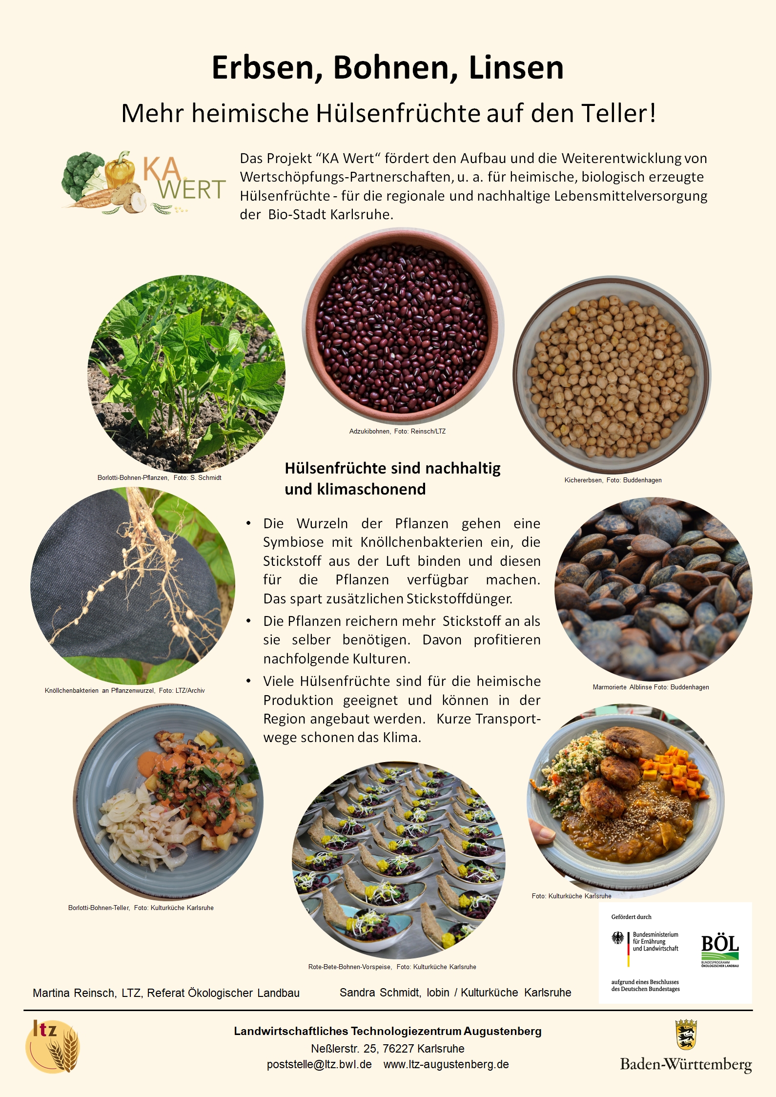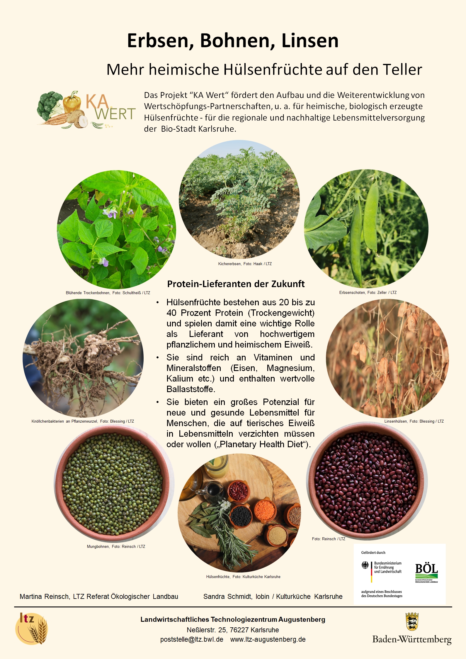 Projektbeteiligte: KA.Wert, ein RiWert-Projekt des BÖL und das Landwirtschaftliche Technologiezentrum Augustenberg (LTZ) mit dem Referat Ökologischer Landbau und dem Leguminosen-Netzwerk Baden-Württemberg.