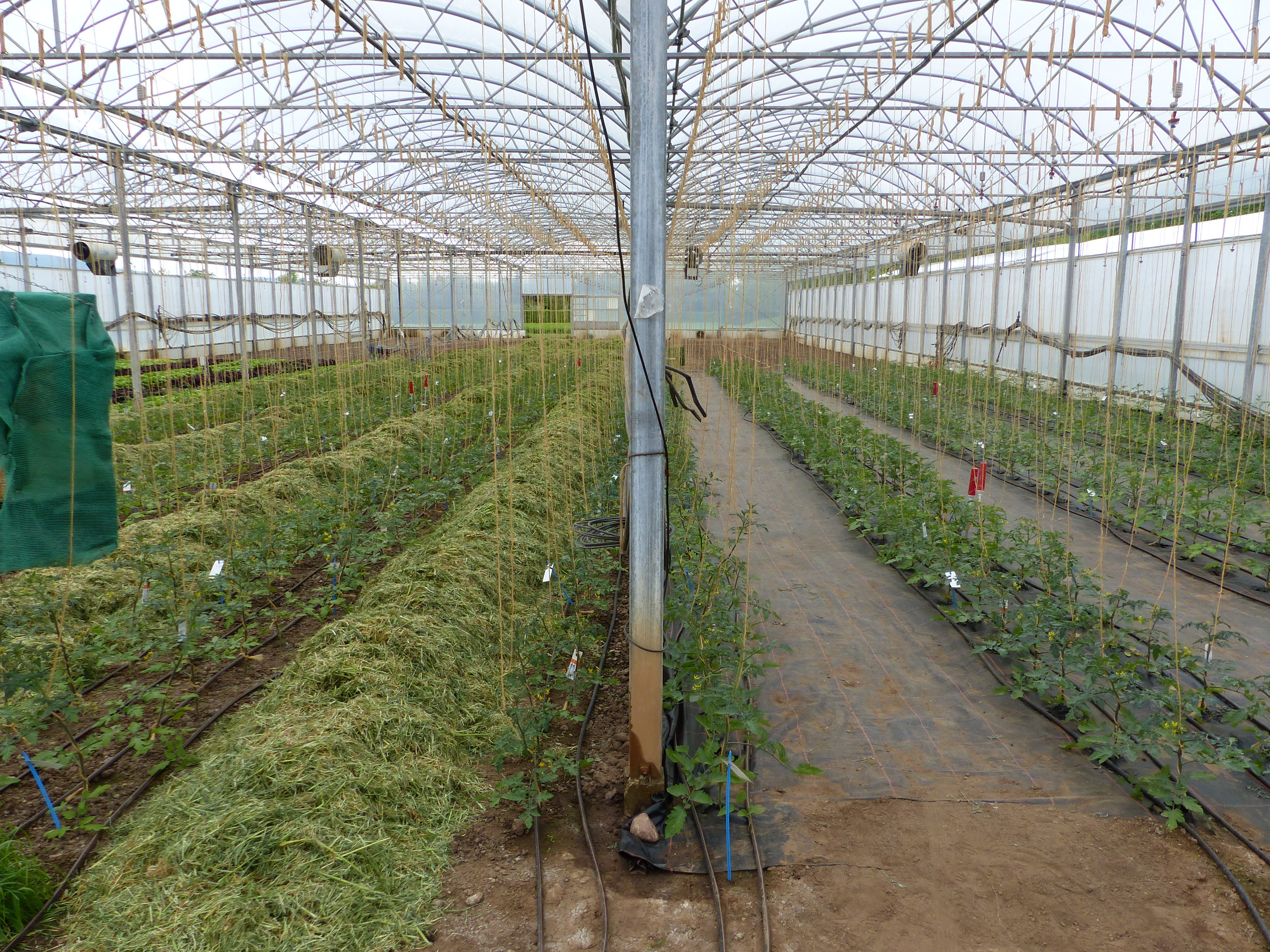 Aktuell wird ein dezidierter Vergleich zwischen dem Anbauverfahren ‚Mulch‘ und ‚Standard‘ an der LVG Heidelberg durchgeführt. Im Rahmen dieses Versuches werden unterschiedliche Tomatensorten hinsichtlich ihres Ertrags, ihrer Qualität und Pflanzengesundheit in Abhängigkeit des jeweiligen Verfahrens geprüft und verglichen. Ebenso werden die Nährstoffströme durch die Erfassung der mit dem Mulchmaterial eingebrachten Nährstoffmengen bzw. der Verbrauch an Düngemitteln, sowie die Veränderung der Nährstoffgehalte im Boden durch regelmäßige Beprobung erfasst. Der Wasserverbrauch und die Entwicklung der Bodenfeuchte wird durch Messung und Steuerung mit Sensoren und Tensiometern überwacht. Mit den gewonnenen Ergebnissen aus dem Vergleich soll eine kulturtechnische und betriebswirtschaftliche Bewertung erfolgen. Im Anschluss werden die Nährstoffverfügbarkeiten und Auswirkungen auf die Folgekulturen versuchstechnisch weiter begleitet.