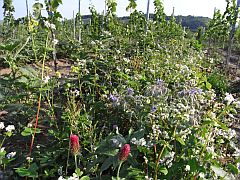 Blütenangebot und begrenzt die Nährstoff- und Wasserkonkurrenz für die Reben.