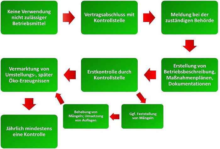 Bevor der Betrieb erstmals ökologisch erzeugte und entsprechend gekennzeichnete Produkte vermarkten darf, muss er für einen bestimmten Zeitraum − den sog. Umstellungszeitraum − die Vorschriften der ökologischen Produktion eingehalten haben.