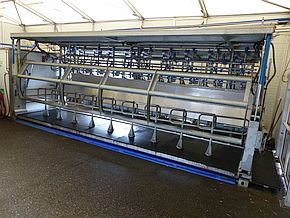 - Weidemelkwagen, d.h. der gesamte Melkstand mit Technik pendelt täglich zweimal zwischen Hof und Weide.