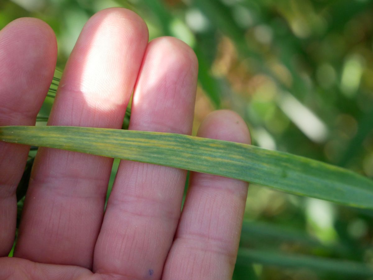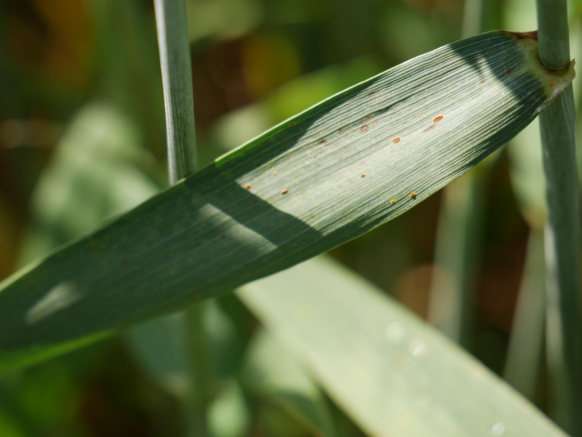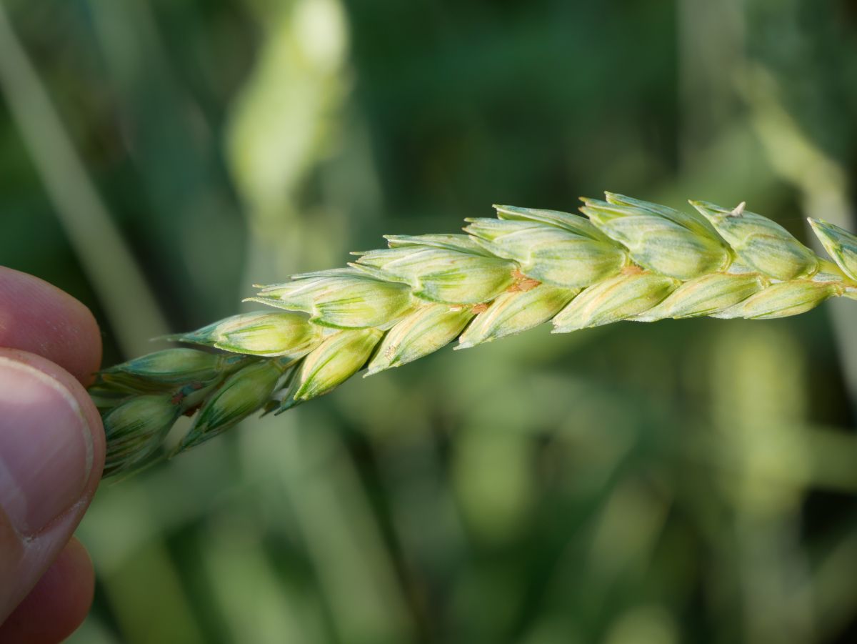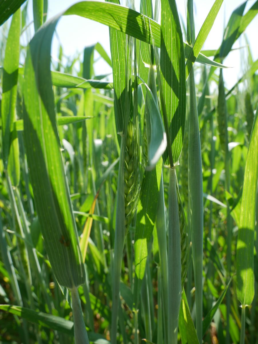 Das niederschlagsreiche und kühle Frühjahr hat der Entwicklung des Weizens gutgetan. In keinem der letzten drei trockenen Jahre hat sich der Weizen so üppig und wüchsig präsentiert wie dieses Jahr. Das Ährenschieben war mit Ende Mai etwa 10 Tage später als üblich. Das ist aber durchaus positiv, denn eine verlängerte Phase des Schossens mit genug Feuchtigkeit und ausreichender Mineralisierung fördert die Ährenanlagen und stärkt somit die Ertragsbildung. Bisher sind keinerlei Blattkrankheiten aufgetreten. Hier und da sind ein paar wenige Blattläuse zu beobachten, die aber keine nennenswerten Schäden verursachen. Nun kommt es auf die weitere Witterung an. Hohe Temperaturen am Tag mit niedrigen Nachttemperaturen, wie sie seit dem 10. Juni auftreten, sind sehr förderlich für die Entwicklung des Braunrostes.