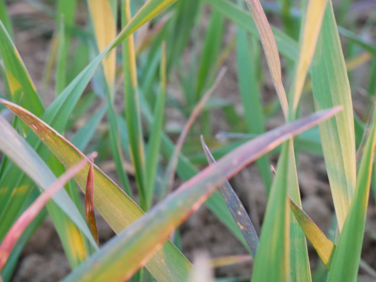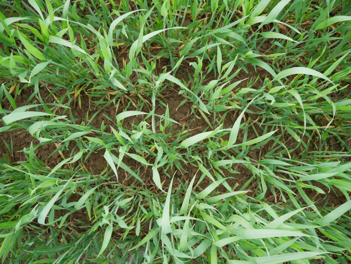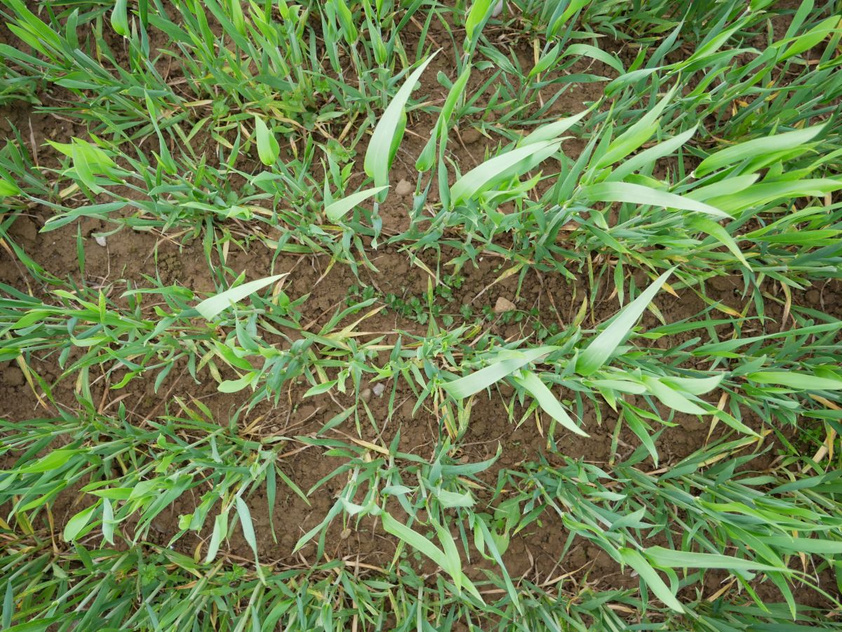 Nach einer etwas wärmeren Phase Ende Februar/Anfang März, in der auch der zweite Striegelgang erfolgte, kam es zwischen dem 7. und 9. März noch einmal zu Nachtfrösten bis -5°C bei zum Glück weitgehend geschlossener Schneedecke. Auf diese Weise war der Vegetationspunkt der Pflänzchen geschützt und nur die aus dem Schnee ragenden Blattspitzen wurden durch den Frost geschädigt. Sorten mit eher flachem, kriechendem Wuchs (z.B. Roderik) erlitten keinerlei Schäden.